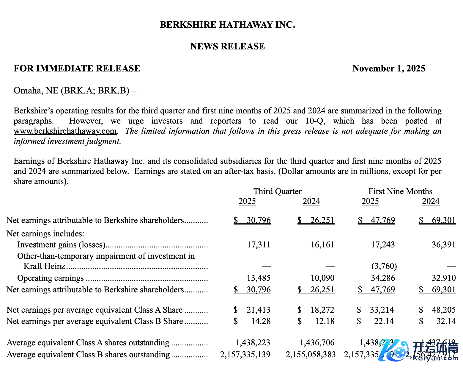 | 伯克希尔哈撒韦A最新财报清楚,2025Q3净利润307.96亿好意思元,上年同时262.51亿好意思元。第三季度买卖利润达134.85亿好意思元,前年同时为100.9亿好意思元。