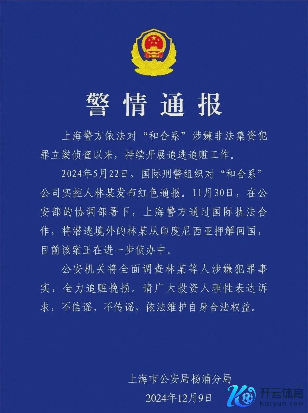 开头 | 易简财经开云体育 撰文 | 陈璐瑶 大快东说念主心! 12月9日,上海市公安局杨浦分局发布警情通报,兔脱境外的“和合系”实控东说念主林强,仍是从印尼押送归国了。  凭据指控,林强利用庞氏骗局,骗了大众超5万东说念主,累计金额特地140亿好意思元,约1000亿元东说念主民币。 客岁9月,他一会儿不知所终,后被发现逃到国际去了。东躲西藏1年多,还没超脱多久,就被捏归国。 不知说念这位也曾的老本大佬,会不会后悔当初的一举一动? 1 风浪一时的老本大佬 提及林强这个东说念主,当年在老本圈但是风浪一时的东说念主物。 本年39岁的林强,毕业于上海交大,领有上海交大的硕士学位,和北京大学的博士学位,妥妥的高材生。 他在金融界混了10多年,在国泰东说念主寿、、国金基金等响当当的金融机构,王人待过。 这个配景的含金量,仍是能让许多“韭菜”深信了。 2016年,林强创办了和合草创,我方当总裁。2021年,林强又连气儿收购了和合期货。 这下,林强的“和合系”老本帝国选藏成形:和合草创、和合期货和和合股管。其中,和合股管是和合期货的全资子公司。  这个老本帝国的业务范围,那是十分广,涵盖了股权投资、证券投资、单据投资、地产基金等多个规模。 这还不啻,2021年,林强还与上海国资创投平台搭上线,成为后者旗下海望老本的惟一民营合伙东说念主。  或是有了这一背书,林强之后一说念开挂,“和合系”也愈加狂飙突进。 2021年,林强被评为“陆家嘴金融城十大凸起后生”。 2022年,他更热血蓬勃地示意,当下是作念硬科技投资最佳的期间,莫得信仰的东说念主是作念不好投资的。 谁能思到,这个老本大佬的漂亮话背后,会藏着一个行将炸响的近千亿巨雷呢? 2 巨雷炸响 好友自裁、林强避难国际 林强“爆雷”的主如果两个业务:单据投资基金业务和城投债的结构化刊行。 当先是单据投资基金业务,亦然“和合系”的基本盘。 这类业务,所以银行承兑汇票为主要投资方向的基金家具,大要是靠赚取银行利息和承兑汇票贴息之间的差额,来得回收益。 不外,据了解,和合系的单据,每年能卖300亿,但是其中大部分,王人流向了一家叫作念瑞兆租借的公司,这家公司的幕后实控东说念主恰是林强。 等于投资者的钱,王人转到了林强我方手里。 再说城投债的结构化刊行,这就得提到林强的一又友,业内隐形大佬,余雷。 说他隐形,是因为余雷明面上等于一个期货公司的庸碌投资司理,但他暗自里编织起的城投债资管家具,却是范畴强劲—— 累计刊行300亿元,波及约130家机构、3000多名关系东说念主员。 结构化发债的试验,是那些在公开商场融资穷苦的城投方,通过中介妙技,营造债券认同度高的场面,从而较低债券融资难度。 他和林强二东说念主的协作模式为——余雷组织城投债的发利用命,而林强则身为其至关紧迫的代销渠说念。 但2022年,一场针对城投债的反腐风暴席卷而来,余雷也在这场风暴中应声倒下,2023年被捏了。 林强则一直淹留在香港,安排家东说念主以旅游相貌前去新加坡,随后在8月与辖下终末一次约聚后,从香港出境,东说念主间挥发。 奇幻的是,2023年底,余雷被取保候审,在渡过了他东说念主生中终末一个春节后,大年头六自裁而一火。 王人说他自裁,或是万念俱灰—— 有一则报说念称,余雷多年来靠违章城投债攒下的十数亿身家,恐大部分王人被林强“卷走”了。 而和合草创这边呢,反抗之后,在本年4月9日,照旧扛不住了,晓示暂停兑付。  3 印尼被捕 2个月后便被押送归国 而另一边,林强在境外东躲西藏了1年多,不详嗅觉风声曩昔了,就思去度假圣地巴黎岛超脱一番。 效力没思到,就这样就逮了。 相等碰巧,9月25号,国际刑警组织发了对林强的红色通缉令,9月26日,他就入境印尼的巴厘岛。 他拿的是一真名为“Joe Lin”的土耳其护照。 而巴厘岛机场本年刚加装的自助通关机器,发现这个“土耳其东说念主”,跟红通讯息部分匹配:生物特征匹配,但是姓名和国籍不匹配。 9月27日,中国大使馆发函说,肯求印尼方面协助,一定要收拢林强。 比及10月1日,林强准备从巴厘岛的机场,飞往新加坡,却被印尼警方收拢了。 那时他戴着墨镜和口罩,看起来很垂危。 当机场安检东说念主员条目他摘下墨镜进行面部识别时,系统立即报警。随后赶到的观测赶紧将他抑止住。 林强被捕时,身上带着多数现款和珠宝。警方还在他的行李中,发现了多本不同国度的护照和身份证件。 10月10日,林强还带领口罩、身着橙色拘留服,在印度尼西亚外侨局官员的伴随下,出目下雅加达的一场新闻发布会上。 那时,林强每每掩面,似乎不思靠近镜头。  4 结语 我国关系机关的四肢速率很快,距离印尼逮捕林强才过了两个月,就把他押送归国了。 这无疑更成心于查清“和合系”案件的资金行止,警方追赃挽损的使命会鼓舞得更快。 有讼师分析,对林强来说,目下退赔可能是重心,为了争取从轻科罚,林强必须尽最大可能退赃退赔,最大抑止弥补投资东说念主耗费,不然,林强可能会被重判。 即便,林强在国际迟延已久,大部分钞票可能仍是漂浮或是挥霍品,终末能追回些许,真不好说。 但他被捏捕归案,也令耗费严重的投资者,稍感劝慰了。