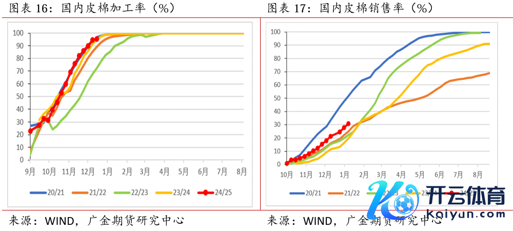 新棉以“基差+后点价”销售方法占主导,仓单注册量同比大幅减少51.6%。据国度棉花商场监测系统看望数据涌现,猖狂1月9日,宇宙皮棉加工率为95.4%,同比下降1.8%,较往日四年均值提高4.3%;销售率为30.8%,同比提高6.9%,较往日四年均值提高2.4%。