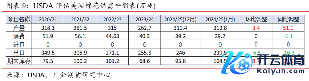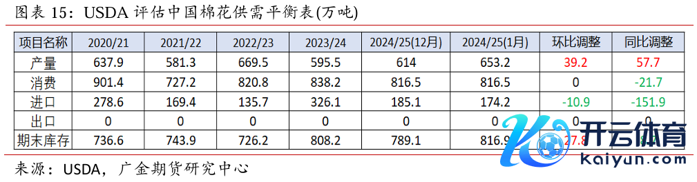1月USDA预测论述我国棉花产量大幅上调39.2万吨至653.2万吨,因此测度后续我国棉花产量仍有上调空间。