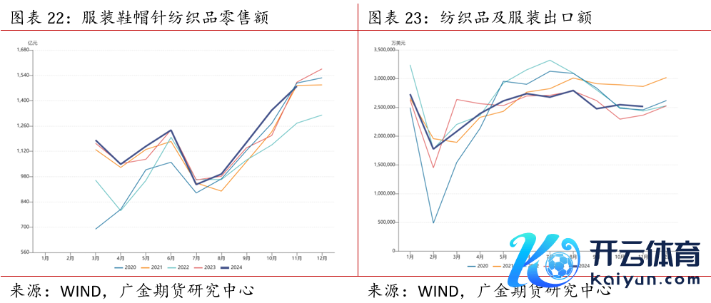 国内终局零卖额是近五年的最低水平;多数外售订单“东南飞”,订单飘摇至东南亚/南亚,以及墨西哥文书对100多种入口纺织制品暂时征收35%的关税(我国在纳税限度之列),因此我国纺织品转出口难度加大,外售出口额也有所下降。据国度统计局,服装鞋帽针纺织品类11月销售额同比下降1.47%;据海关总署数据涌现,11月我国纺织品服装出口额为251.7亿好意思元,环比裁减1.2%,同比加多6.4%。