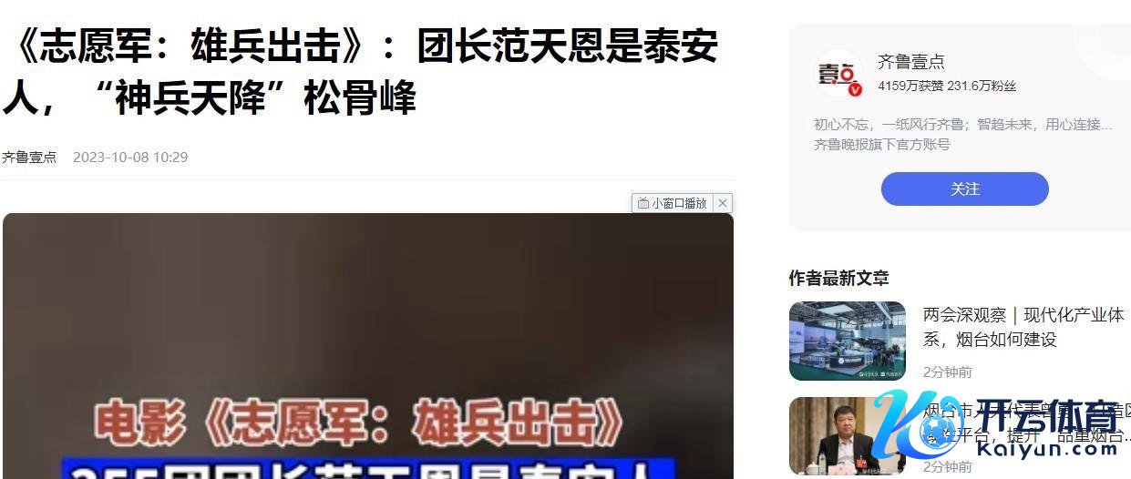电影《志愿军:雄兵出击》中开yun体育网,团长范天恩来自山东泰安,而他在电影中的“神兵天降”松骨峰一幕,也成为了影片的一大看点——音讯开始于王人鲁壹点,发布于2023年10月8日。