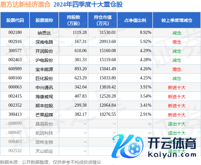 易方达新经济搀杂为搀杂型-生动基金,阐发最新一期基金季报显露,该基金财富成立:股票占净值比92.02%,无债券类财富,现款占净值比8.43%。基金十大重仓股如下: