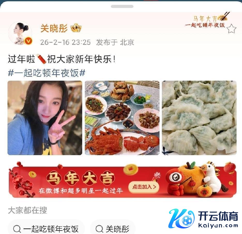 关晓彤在大年三十晚上发了微博。她放了一张我方笑着的相片欧洲杯体育,还有两张除夕饭的图。饭桌上有龙虾和鲍鱼,还有些别的菜。有东谈主看了就说,这像是她家会吃的东西。