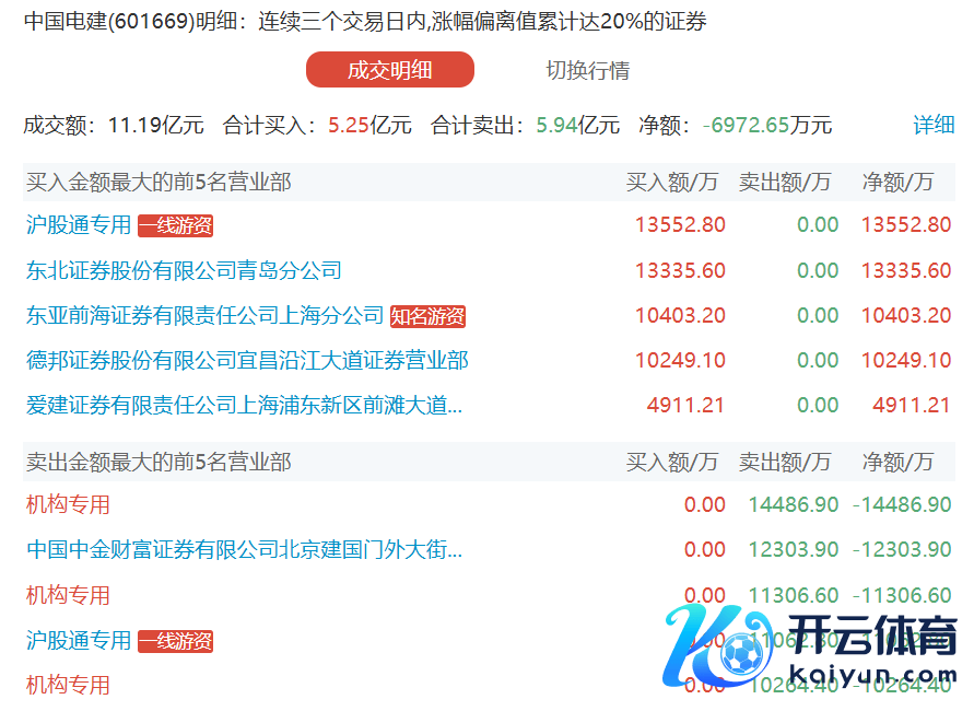 中国电建当天涨停,有3家机构专用席位净卖出3.33亿元中国电建当天涨停,有3家机构专用席位净卖出3.33亿元